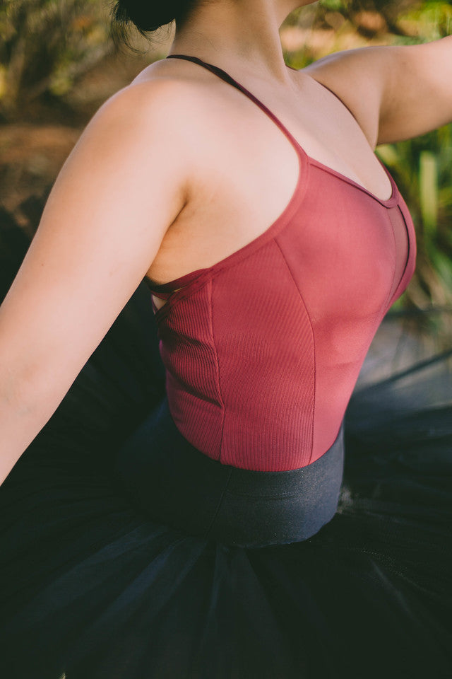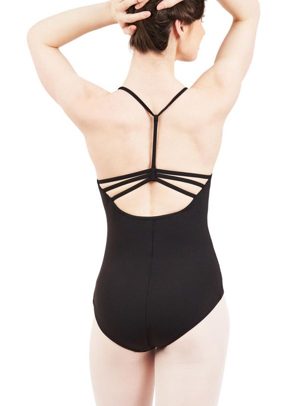 Coming in hot, this reinvented camisole leotard features a “Y” strappy back. This leotard also features patented built-in BraTek2® support and ribbed side panels that hug your curves.