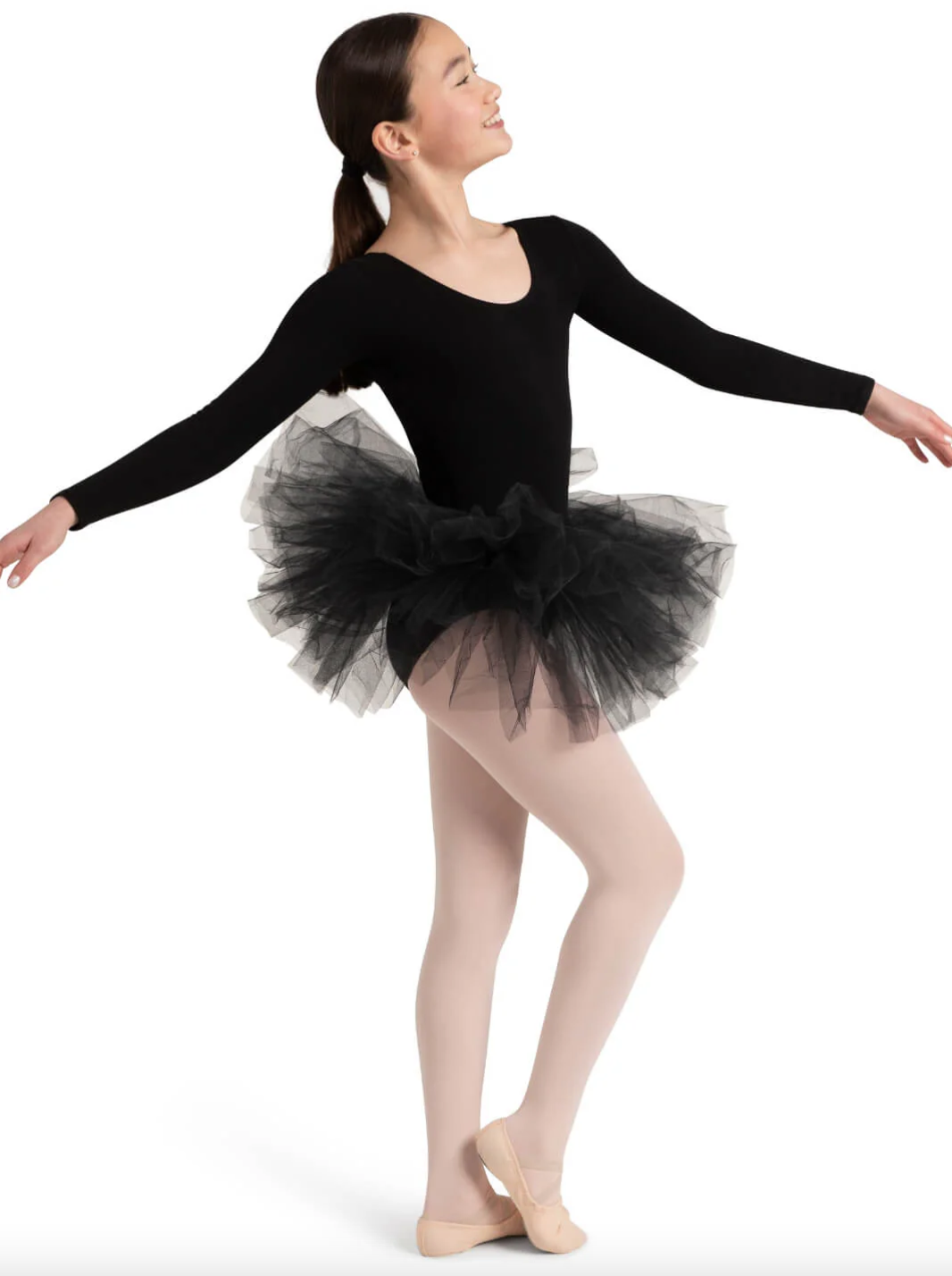 The 3-Layer Tutu is the perfect addition to your little one's dance wardrobe. Made from 100% polyester, this tutu is both comfortable and durable. Featuring a three-layer skirt that boasts a full and voluminous look, making it perfect for ballet class, performances, or dress-up play. With a pull-on design, this tutu is easy for your little one to put on and take off without any assistance. The self-knit elasticized waistband ensures a secure fit and keeps the tutu in place during every move. Pair with their favorite leotard to show off their own unique style. Available in child sizes only.