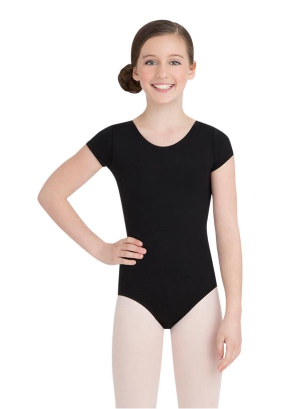 This Team Basic is optimal for studio time, rehearsals and under joggers for an everyday look. The best-selling Short Sleeve Leotard features a classic scoop front and back. Made of a nylon and spandex blend that is soft and resilient. Double stitched seams guarantee long-lasting wear. Available in an array of colors to match your dancer's style.