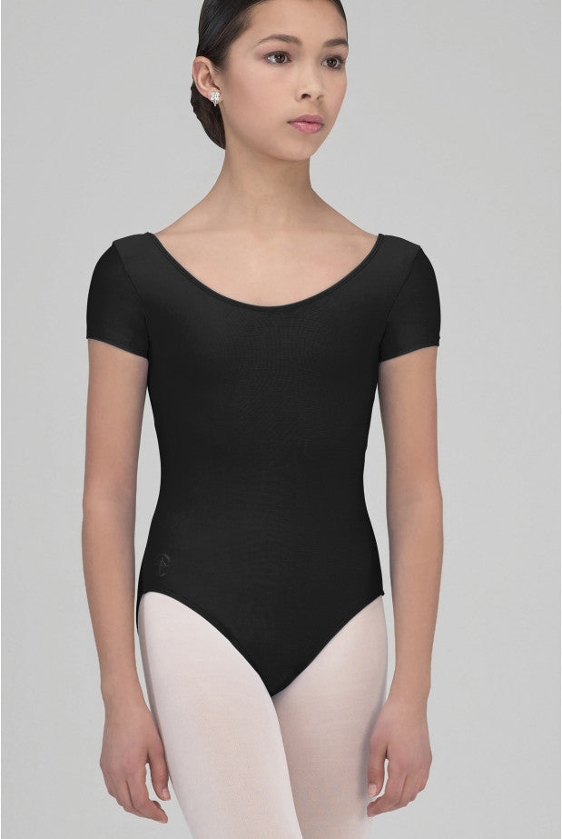 Short sleeve microfiber basic, featuring a modest height back cut and full front lining.