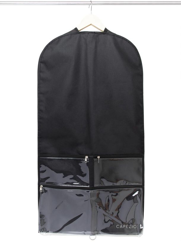 Transport, protect and store your costumes with ease! Zipper pockets to keep all your headpieces, makeup and shoes in one place.