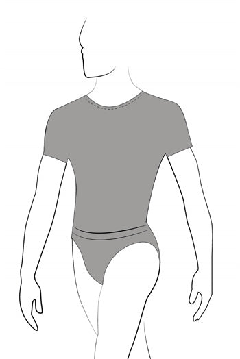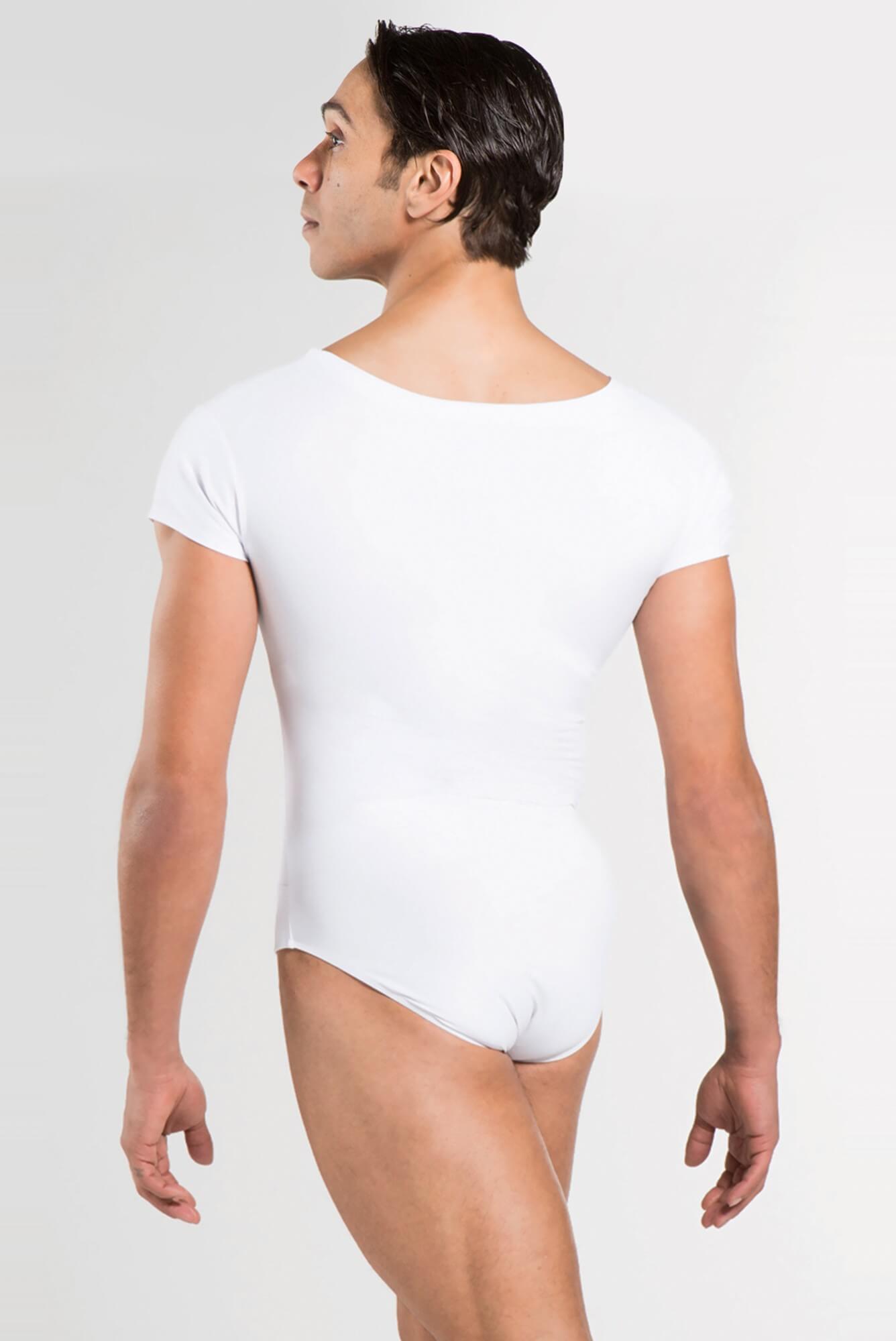 Wide neck men's leotard with cap sleeves. Full seat bottom without front padding.
