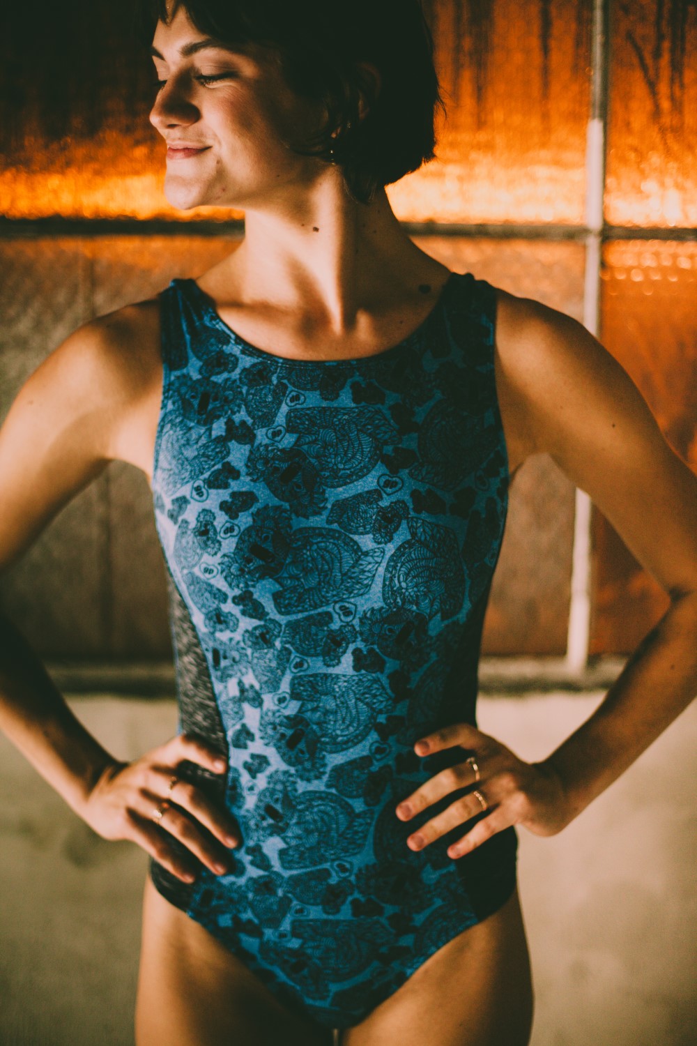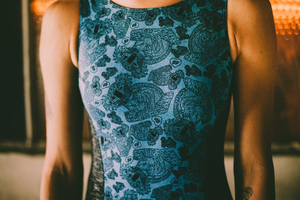 This leotard is 88% polyester 12% spandex. This leotard is in a super soft heathered turquoise. This print was inspired by the intricate coloring books and is supposed to have a camouflage feel to it. Super soft in our perfect fit, 88% polyester 12% spandex. Leotards will move with you and stay smooth and sleek. The fabrics are soft, stretchy and tagless for a scratch free fit. Our softest most comfortable leotard.