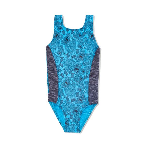 Girl Power Koala leotard in our new perfect fit with gray strata side detail.
