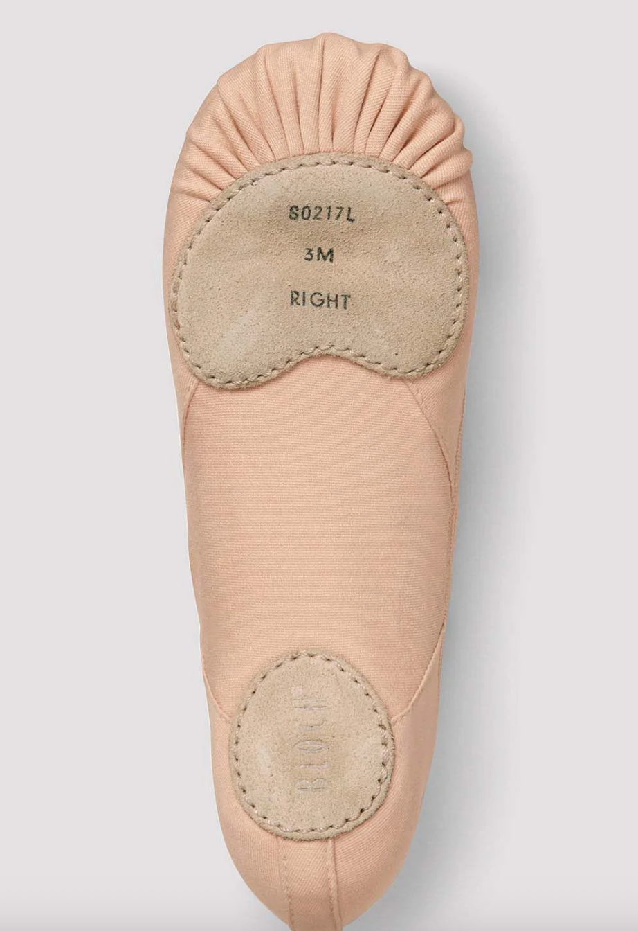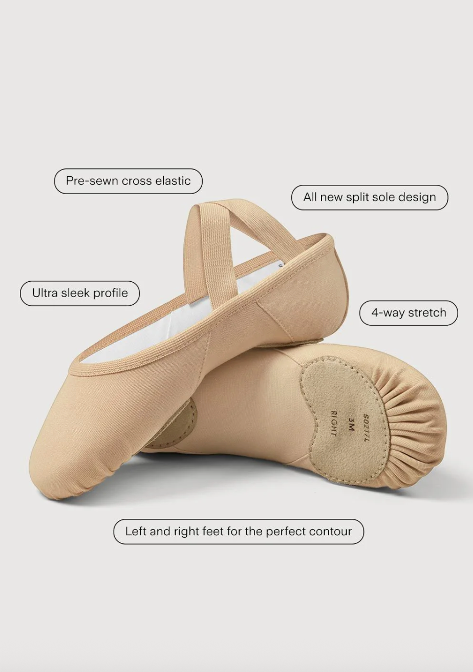 Introducing Elation, Bloch's new ballet shoe that sets a new standard for precision and comfort. Crafted with an asymmetrical design for a perfect fit, Elation features a 4-way stretch fabric in the arch, ensuring fit and flexibility for flawless arch support. The combination of innovative stretch lining and premium stretch canvas upper, not only offers supreme comfort but also allows the wearer full freedom to spread their toes. The asymmetrical suede outsole completes the shoe, ensuring elegance and durability. Elation - Bloch's innovation to enhance your performance.