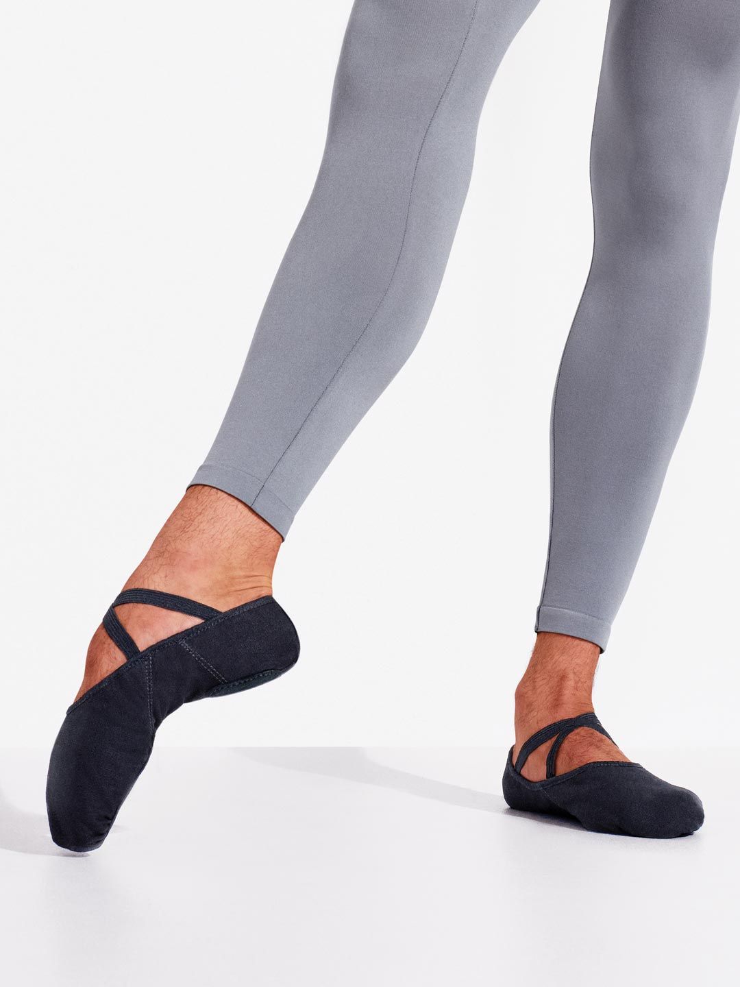 Become one with the studio floor in the Men's Canvas Romeo Ballet Shoe. Designed with a unique sculpted arch for uncompromised flexibility. Precision trimmed forefoot padding ensures a flat shoe with concealed comfort. Smooth floor contact is enhanced even further by moisture absorbent lining and hammered pleats.