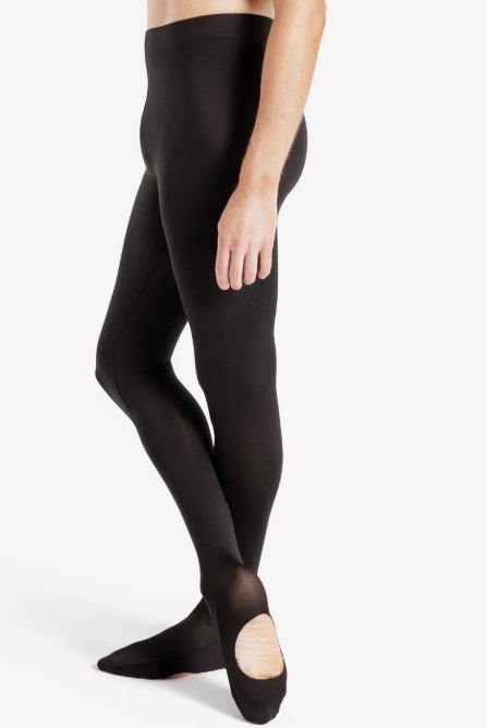 Transition tights are designed specifically for male dancers. Made with our luxurious Tactel® fabric, these tights are thick and supportive while remaining extremely flexible for every style of dance. Perfect for every class and performance. Hole on the bottom of the foot so tights can transition from footed to footless with ease. Wear with your favorite top, leotard, or costume! Available in both adult and child sizes.