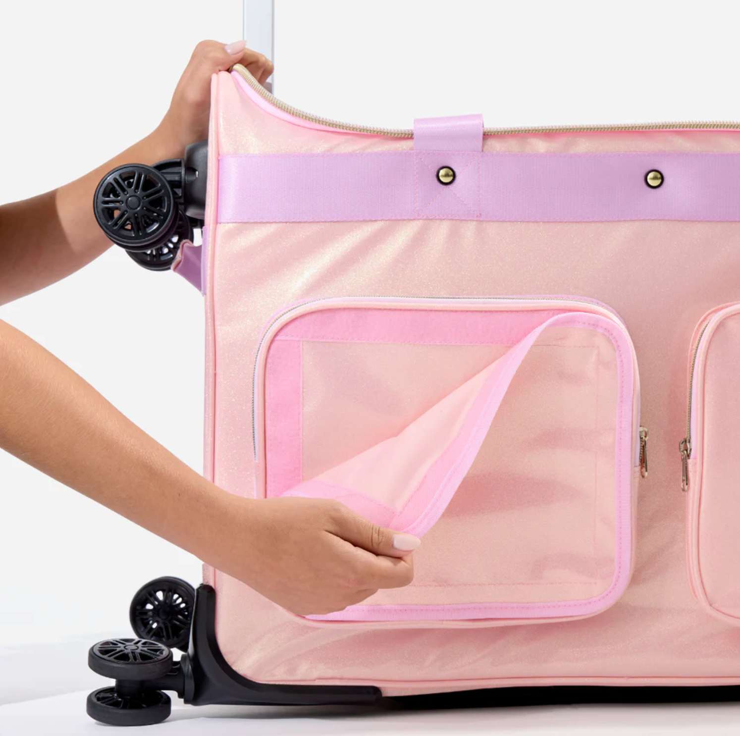 With its subtle shimmer finish, The Halo Collection captures the light and movement of every dancer while keeping everything organized, protected, and performance-ready.