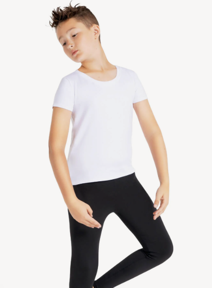 Your favorite Crew Neck Tee is now available in our luxurious Tactel® fabric! Perfect for every class, this comfortable tee is breathable and smooth. Slim-fit for flattering movement while remaining stretchy and flexible for every style of dance. Pair with your favorite tights or bottoms to create your own custom look. Available in both adult and child sizes.