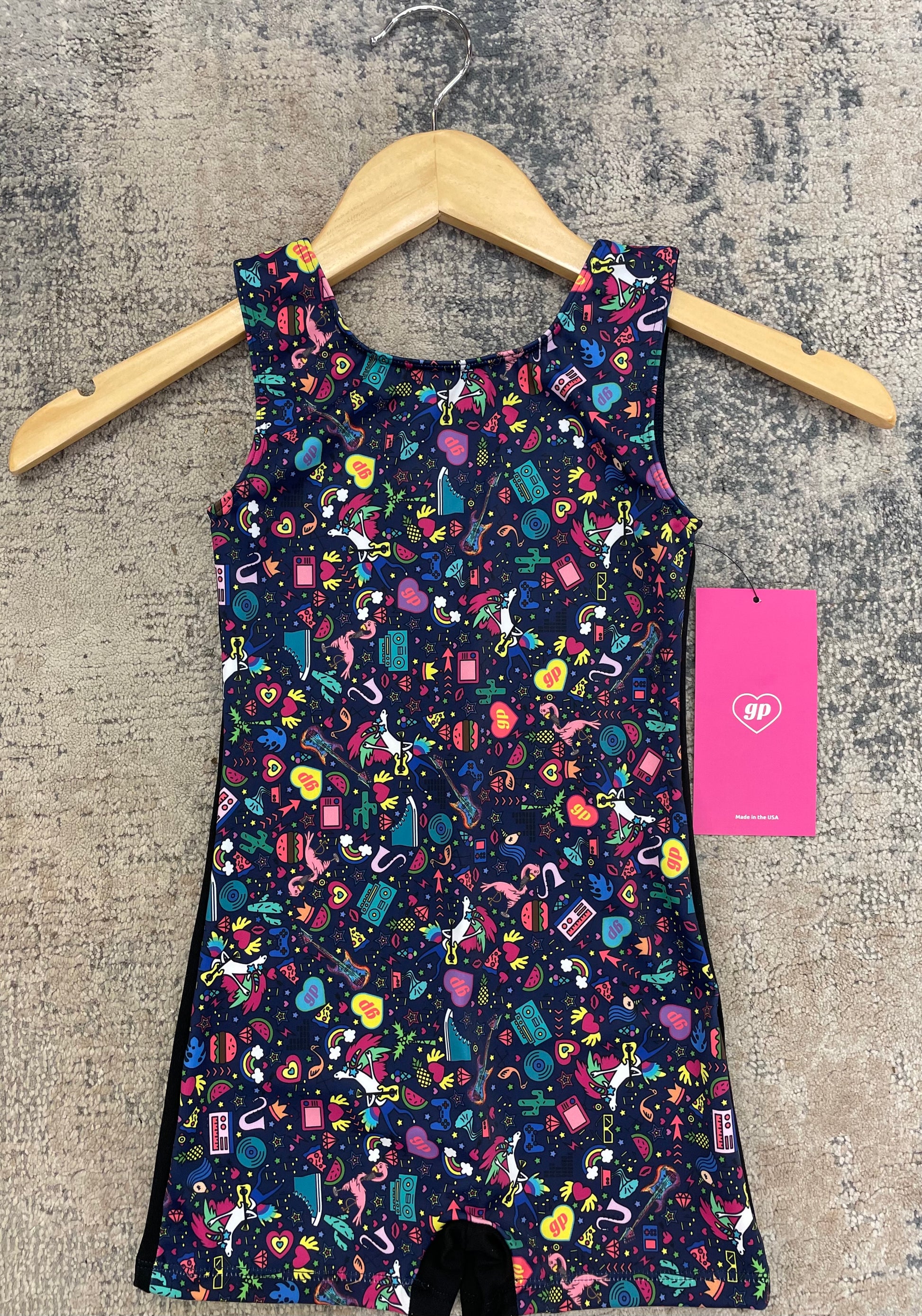 Get ready to jam out with flamingos and unicorns! Grab a microphone and start singing! Your budding champion will shine on the mat, the bars or the balance beam in this soft and stretchy biketard made in the USA. This biketard is 88% polyester and 12% spandex, machine wash lay flat to dry. This leotard will move with you and stay smooth and sleek. The fabrics are soft, stretchy and tagless for a scratch free fit. Girl Power Sport donates $1 with each purchase to charity.