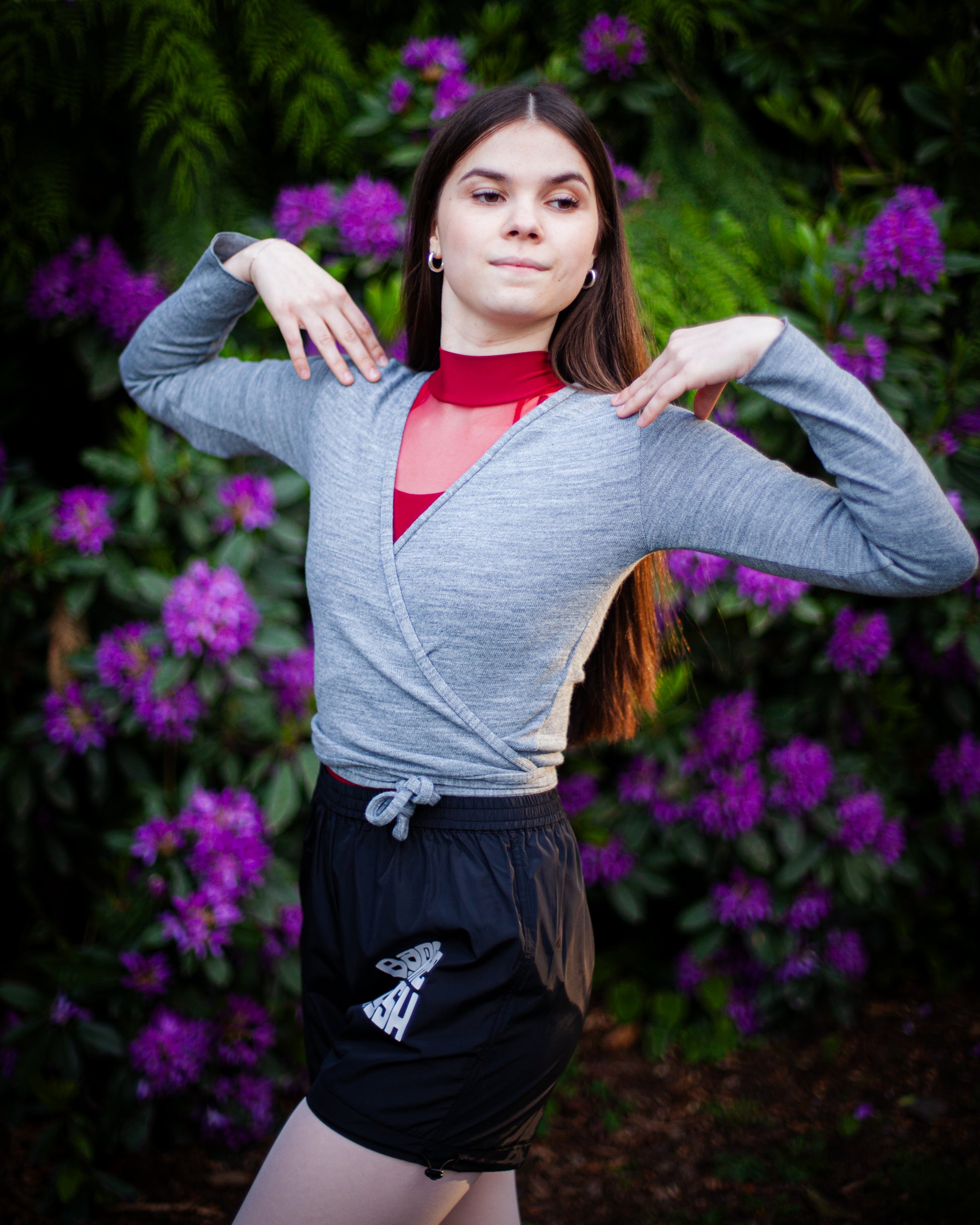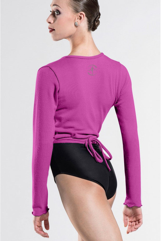 This classic knitted full-sleeved wrap-around top secures with adjustable self-ties for a snug fit. This is a must-have piece in the studio: layer the wrap-around top over your favorite leotard before you warm up. Our soft knitted fabric delivers maximum comfort and a perfect fit.