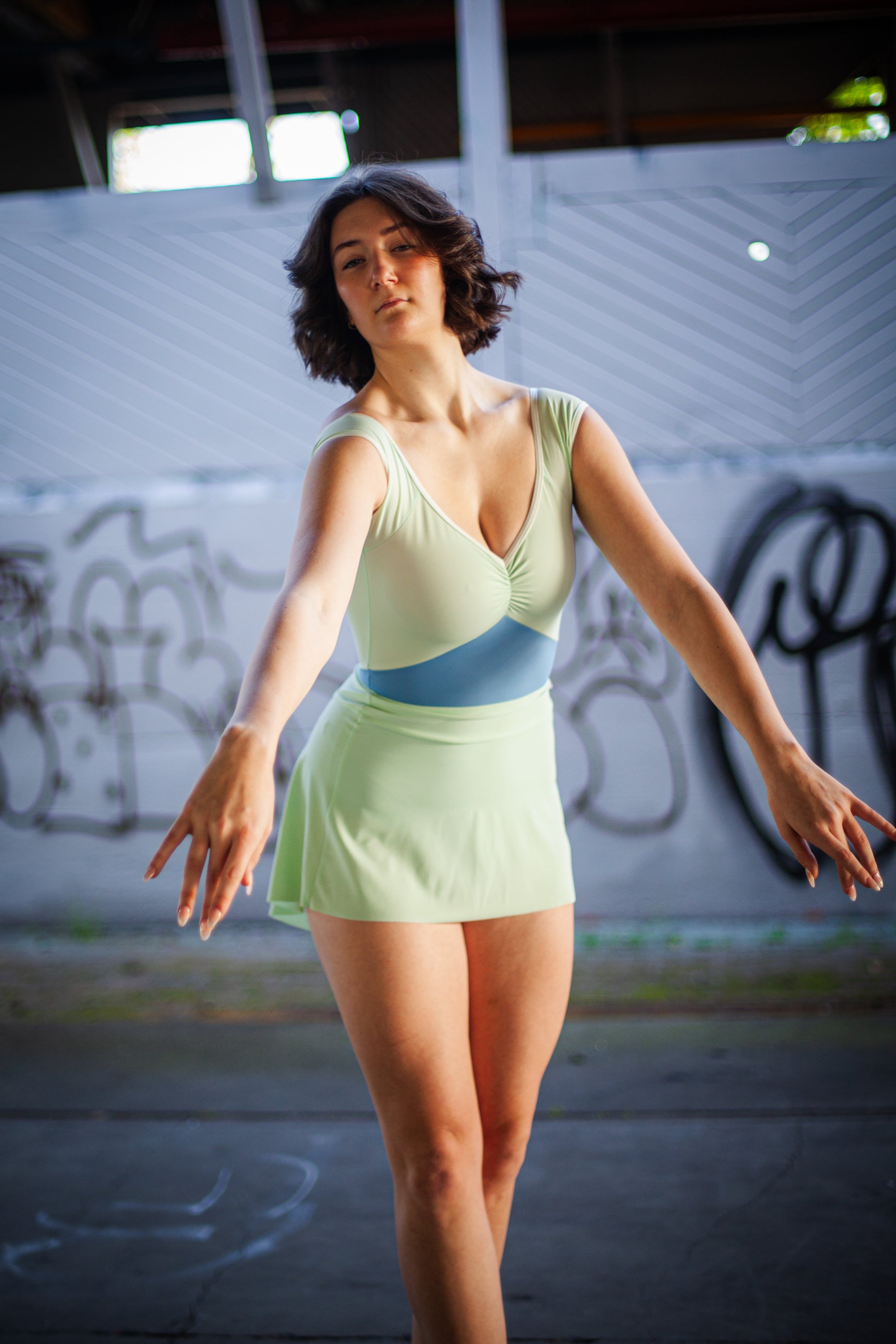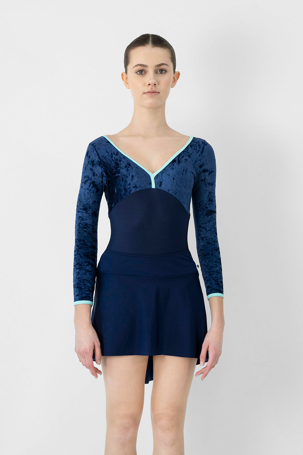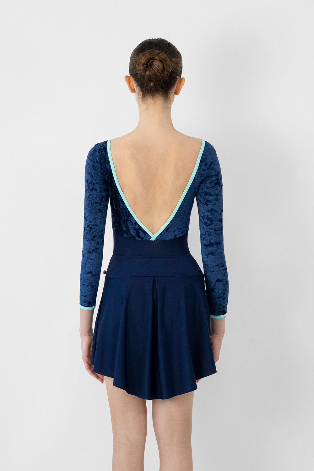 Looking for a classic, skater skirt to match your favorite YUMIKO leotard? Created with a subtle hi-lo hem, smooth waist band, and playful back pleat.